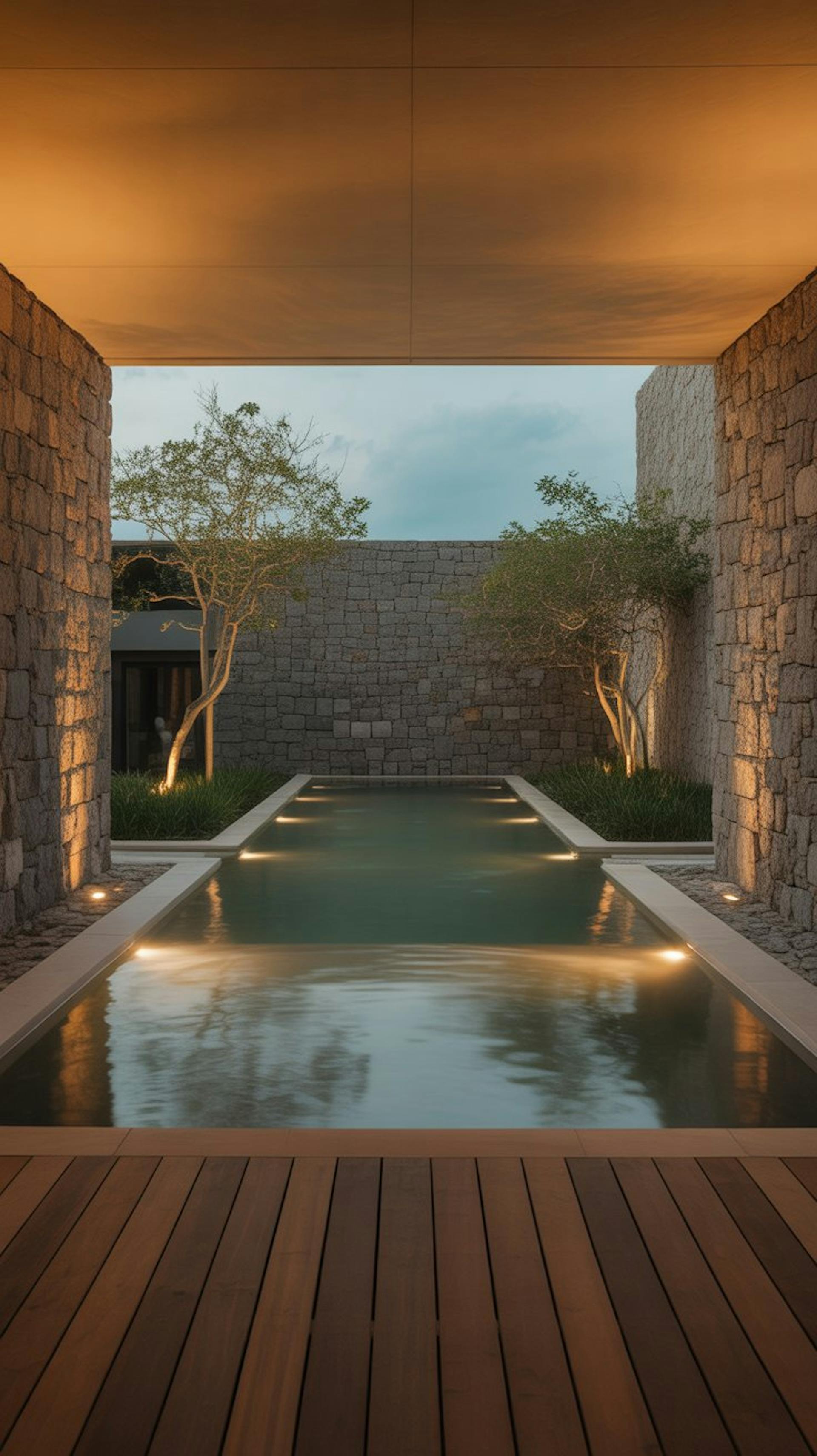 Indoor-outdoor infinity pool surrounded by natural stone walls | Hyein Lee