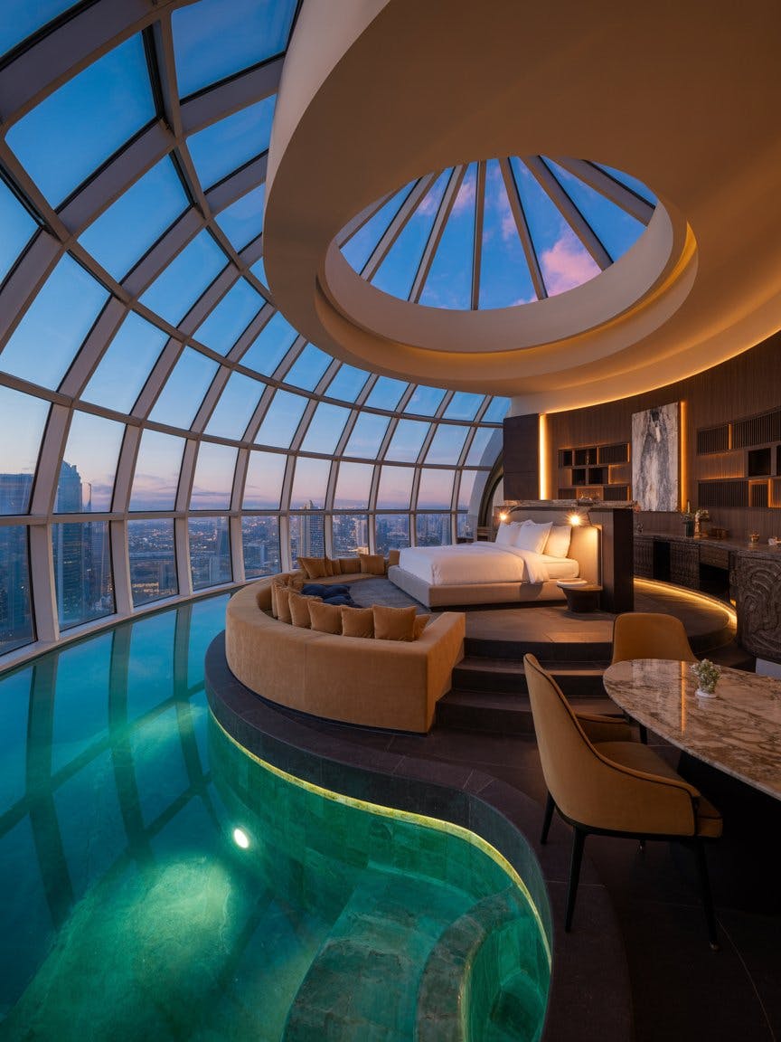 Top-floor suite with spiral-shaped plan and private indoor pool