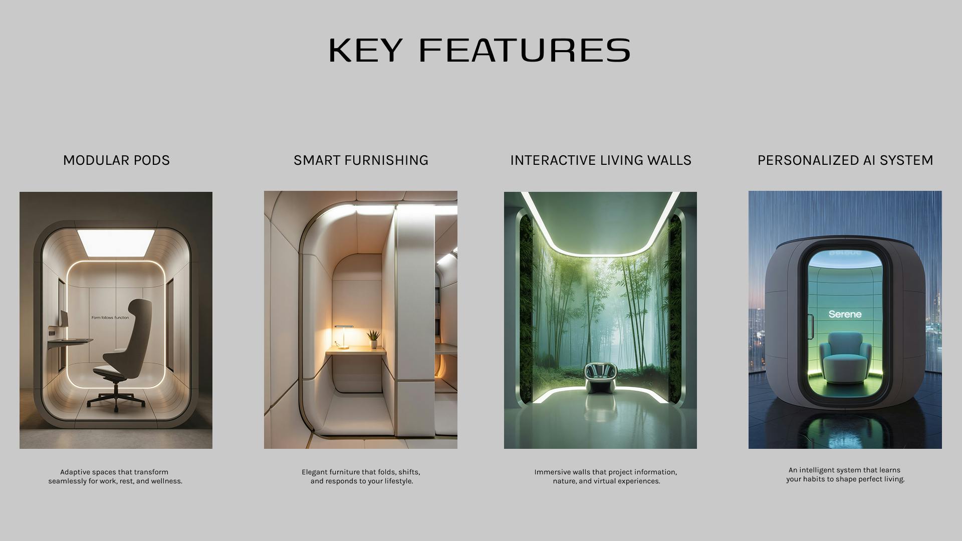 The Futuristic Lifestyle Capsule envisions a new paradigm of urban living in 2030. Designed as modular, AI-enhanced spaces, each capsule seamlessly integrates home, work, wellness, and leisure. With sleek architecture, adaptive interiors, and immersive digital environments, it embodies the essence of high-end modern living.